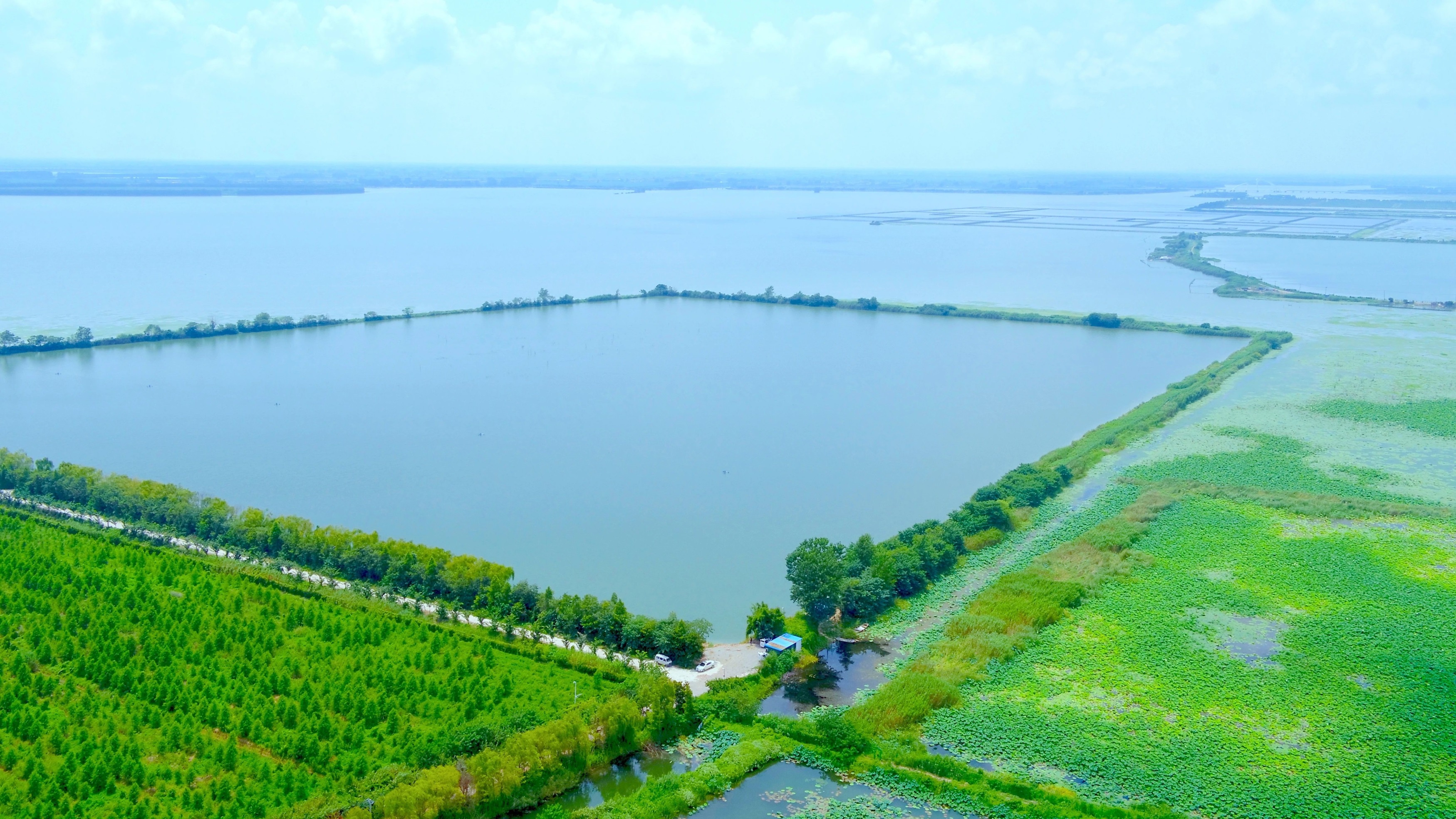 盛夏時節(jié),走進白馬湖國家濕地公園,岸邊綠樹成蔭,水草、荷花在水中搖曳,平坦整潔的道路蜿蜒伸展,植被郁郁蔥蔥,錯落有致。水中碧波蕩漾,荷葉田田,不時有一只鳥兒從水面上劃過,構(gòu)成了一幅絕美的生態(tài)畫卷。
