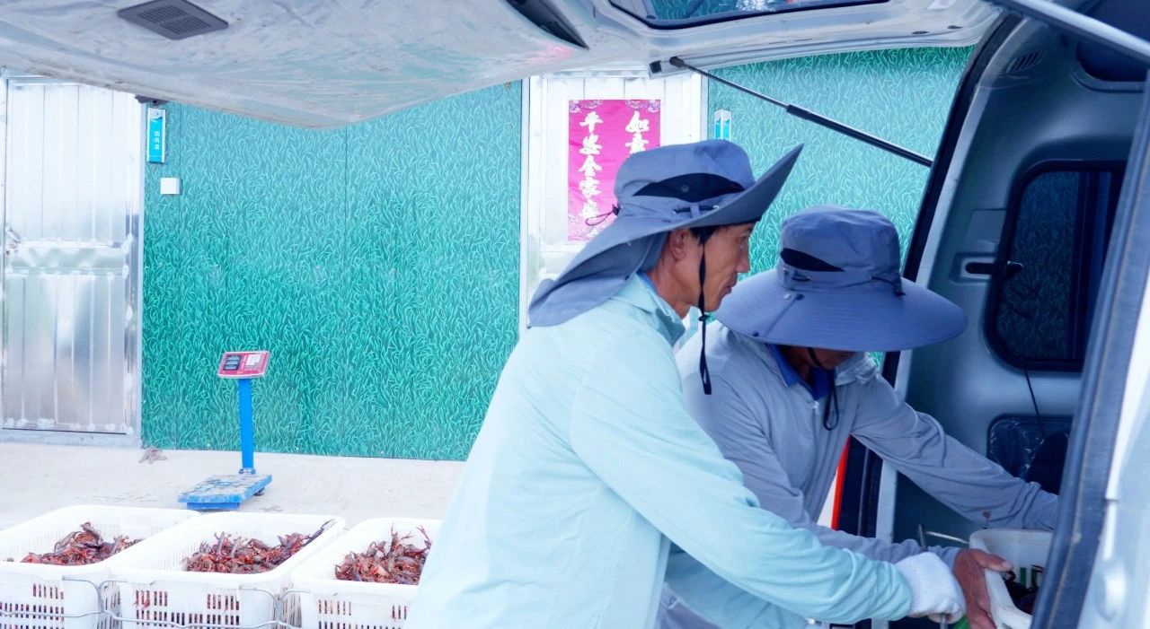 凌晨就開始繁忙的還有位于白馬湖畔的南閘生態(tài)漁業(yè)繁保基地,漁工們天沒亮就在水田里拉網(wǎng)捕撈小龍蝦,一筐筐碩大肥美的小龍蝦陸續(xù)被捕撈上岸。看著絡(luò)繹不絕的選購商販,南閘繁?;氐摹皾O人”們臉上笑開了花!“我們基地現(xiàn)在管理利用水面約為2700畝,其中龍蝦塘200畝、螃蟹塘約300畝、魚塘約2200畝。目前是龍蝦捕撈旺季,基地每天可捕撈銷售龍蝦約1000斤,日銷售額約15000元?!痹S成介紹說。