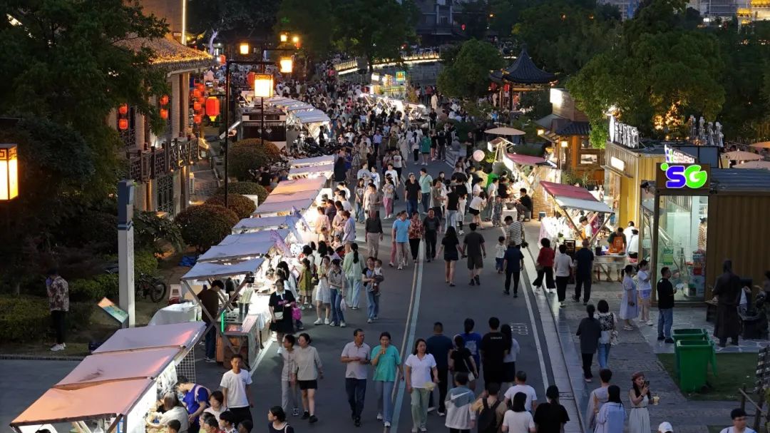 夜晚的里運(yùn)河文化長(zhǎng)廊清江浦景區(qū)宛如一顆璀璨的明珠,在城市夜色中散發(fā)出迷人的光彩。這個(gè)暑期,該景區(qū)推出了“萬(wàn)事大集”夜市和七夕特別活動(dòng)?;顒?dòng)中,既有漢服民族舞、樂(lè)隊(duì)駐唱等精彩節(jié)目,又有投壺、釣巧果、蹴鞠、猜燈謎等國(guó)風(fēng)競(jìng)技游戲,吸引了眾多游客。景區(qū)內(nèi)的游船碼頭上經(jīng)常排起長(zhǎng)長(zhǎng)的隊(duì)伍,游客們紛紛乘船于里運(yùn)河之上,在碧波蕩漾中飽覽迷人夜景,通過(guò)導(dǎo)游的講解領(lǐng)略風(fēng)土人情。活動(dòng)開(kāi)展以來(lái),該景區(qū)的游客接待量持續(xù)攀升,這個(gè)暑期累計(jì)接待游客超62萬(wàn)人次?;馃岬募薪?jīng)濟(jì)激發(fā)了游客的消費(fèi)意愿,提振了商家的信心,折射出市場(chǎng)的潛能。今年七八月份,淮安文旅集團(tuán)旗下景區(qū)、景點(diǎn)、餐飲、酒店的營(yíng)業(yè)收入同比增長(zhǎng)43%。