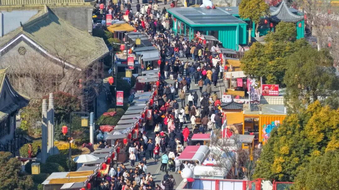 春節(jié)假期,里運河文化長廊清江浦景區(qū)張燈結彩,游人如織。萬事大集熱鬧開市,特色好物琳瑯滿目,互動體驗精彩紛呈,游客流連忘返。