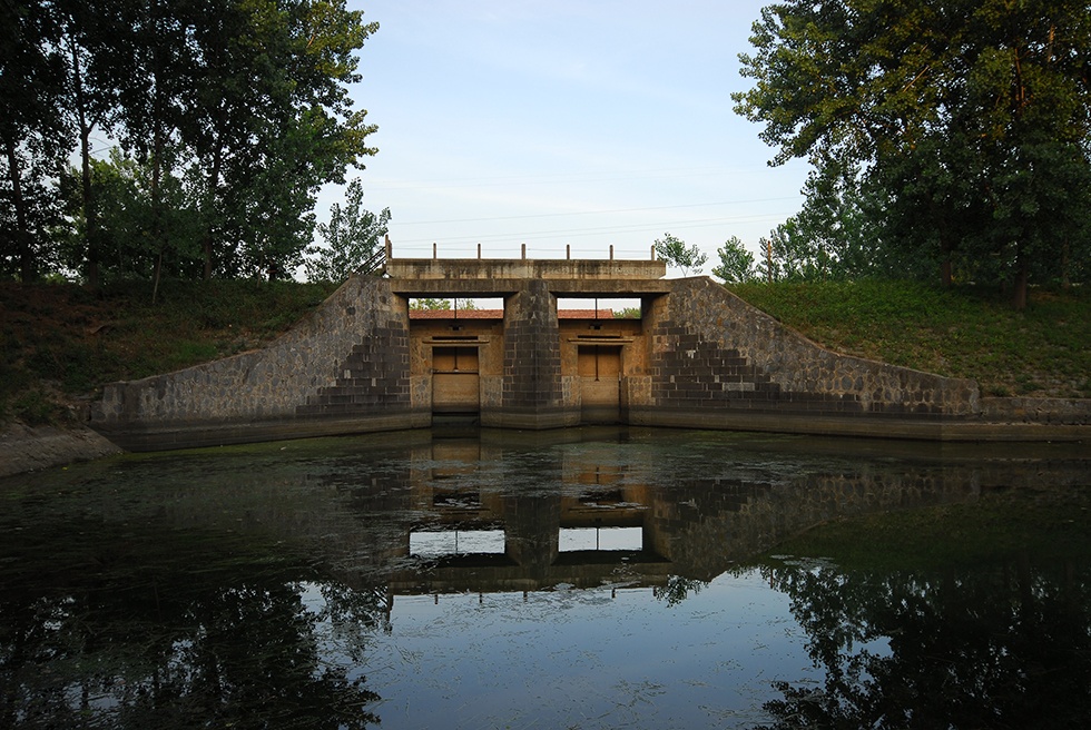 雙金閘是淮北鹽河與中運河交匯處的節(jié)制閘。始建于公元17世紀末,是為了解決汛期黃河水量較大在清口處向運河倒灌的問題,在清口上游而建。汛期時承擔減水閘的作用,向鹽河分流黃河河水,降低清口樞紐的黃河水位。1957 年,淮沭新河開挖,徹底截斷鹽河通道,雙金閘逐漸廢棄。現(xiàn)雙金閘保存狀況良好,在淮陰區(qū)凌橋鄉(xiāng)。
