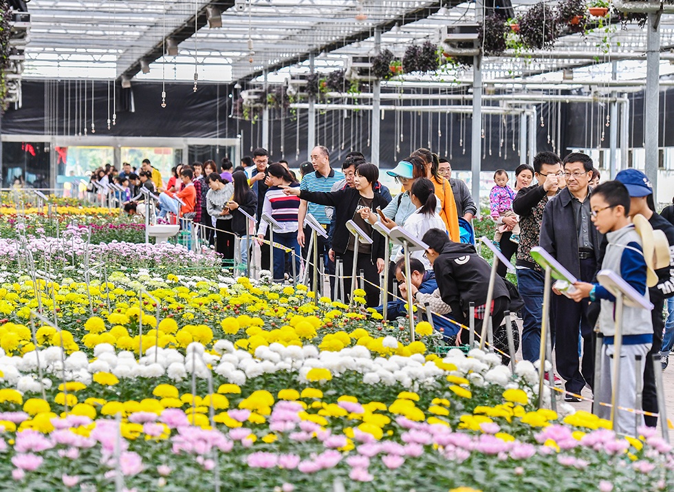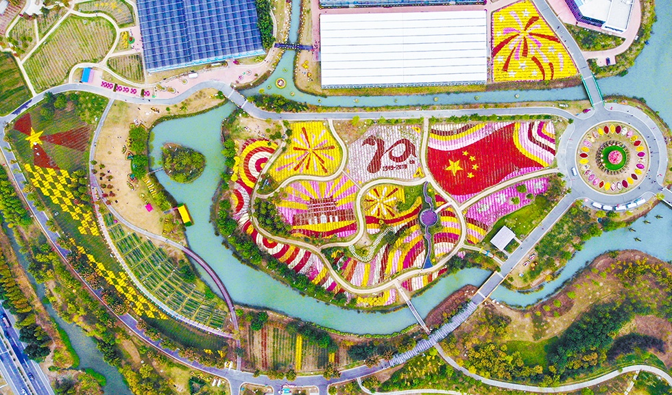 坐擁國(guó)家生態(tài)名湖之畔,吸納大湖風(fēng)光,百畝菊海,香形具美。從高空俯瞰,萬千彩菊繪成各種紅色主題元素圖案,描繪出中華民族偉大復(fù)興的壯麗畫卷。