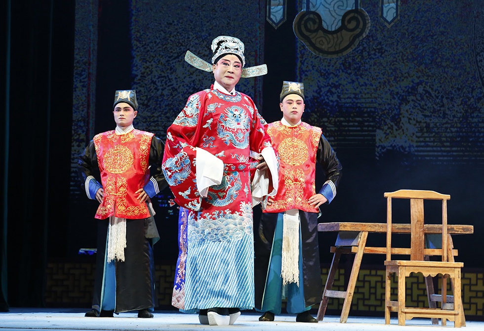 淮劇又稱“江淮戲”,起源于蘇北的香火戲,在江淮之間的淮陰、鹽城、揚(yáng)州地區(qū)和滬寧線上的上海、南京、蘇州、無(wú)錫、常州及安徽滁州、浙江長(zhǎng)興等地廣泛流傳。清末民初,江淮小戲闖進(jìn)上海灘,經(jīng)歷了搭墩子、擺地?cái)?、拉幃子等早期發(fā)展階段,漸漸從茶樓戲園走上專業(yè)舞臺(tái)。上海的淮劇班社吸納了一些京劇演員,在演出中形成“京夾淮”的特點(diǎn),取得長(zhǎng)足進(jìn)步。新中國(guó)成立后,這一戲曲劇種統(tǒng)一定名為“淮劇”?;磩〕灰魳?lè)起源于民間說(shuō)唱與勞動(dòng)號(hào)子,以鏗鏘豪放、優(yōu)美質(zhì)樸著稱,其主要曲調(diào)包括“淮調(diào)”“拉調(diào)”“自由調(diào)”等,具有鮮明的地域特色?;磩〗?jīng)過(guò)幾代藝人的發(fā)展傳承,生、旦、凈、丑腳色行當(dāng)齊全,唱、念、做、打表演程式完備,同時(shí)積累了大量的傳統(tǒng)劇目,號(hào)稱“九蓮”“十三英”“七十二記”。